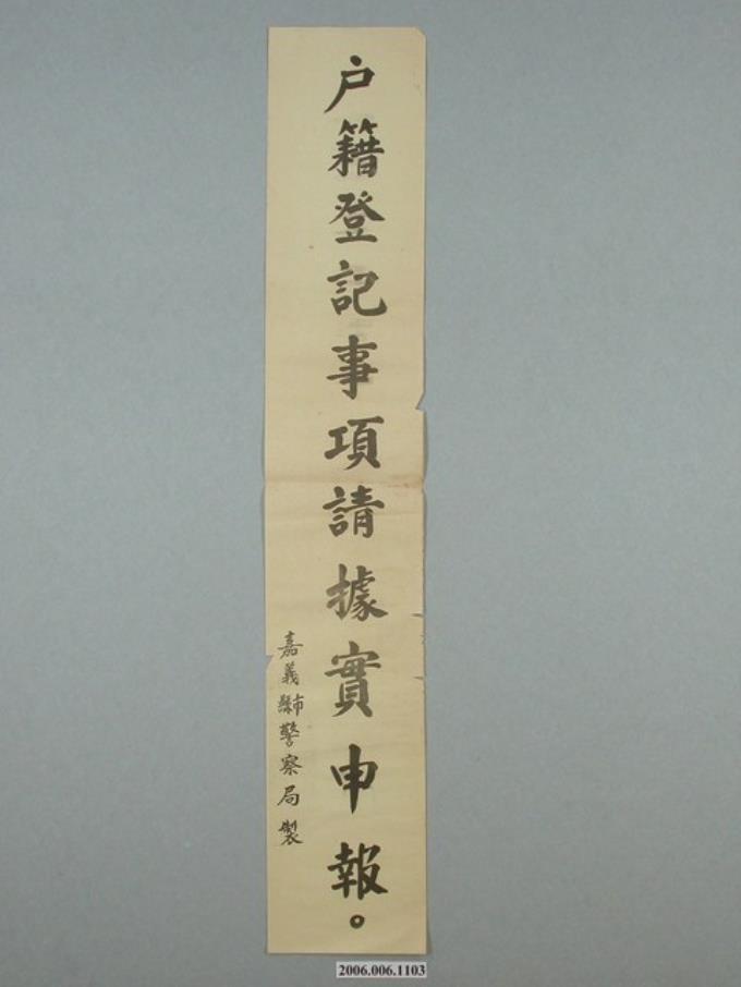 嘉義縣市警察局製「戶籍登記事項請據實申報。」標語