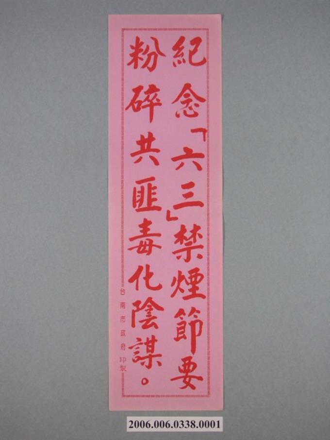 臺南市政府印製反共標語《紀念「六二」禁煙節要粉碎共匪毒化陰謀》