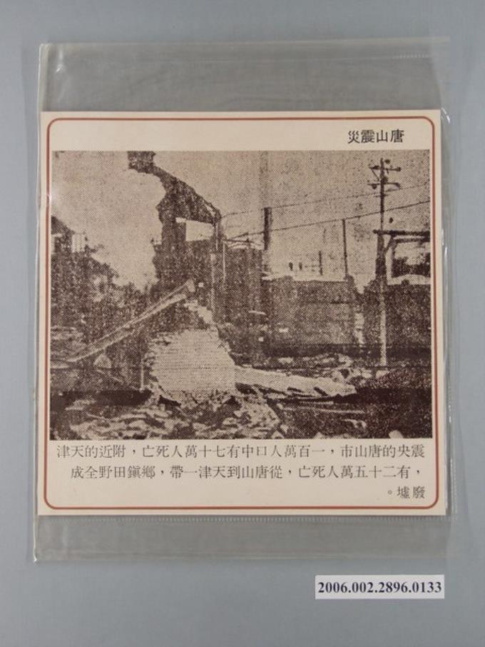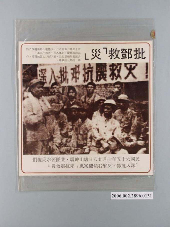 中國大陸災胞救濟總會印行《中國大陸共匪暴行》〈唐山震災〉文宣
