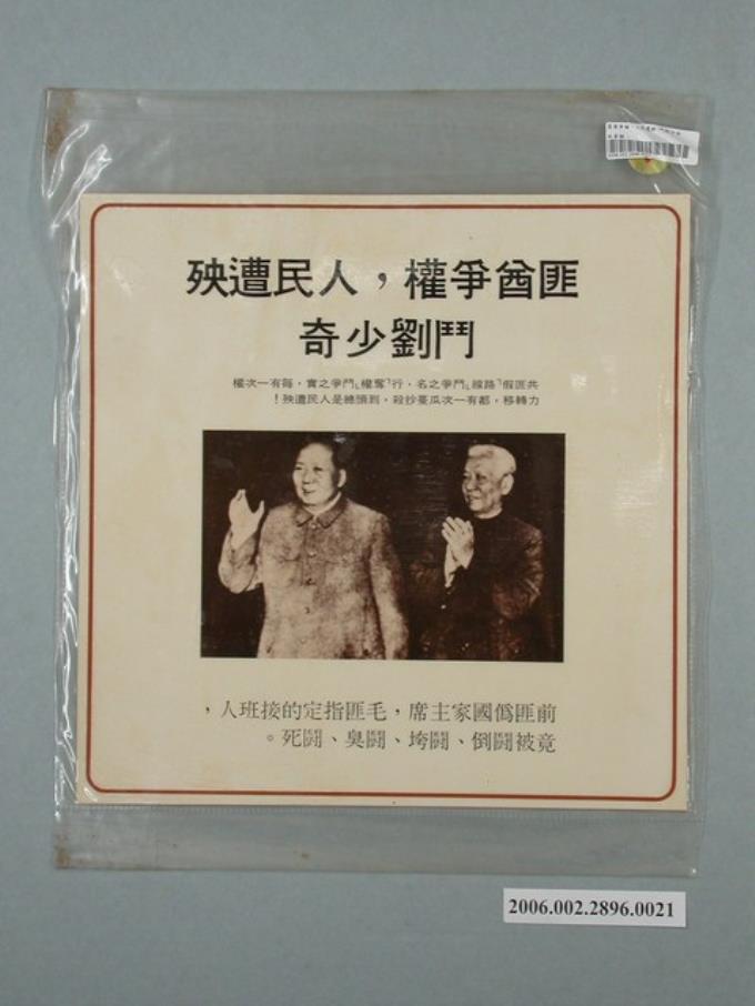 中國大陸災胞救濟總會印行《中國大陸共匪暴行》〈匪酋爭權,人民遭殃,鬥劉少奇〉文宣