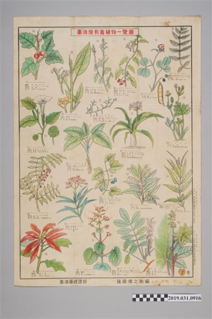 臺灣軍經理部篠原德之助編臺灣產有毒植物一覽圖