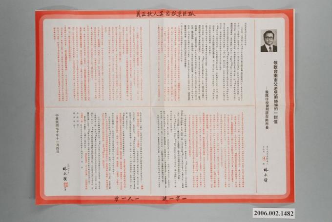 臺南市長候選人林永發選舉宣傳單