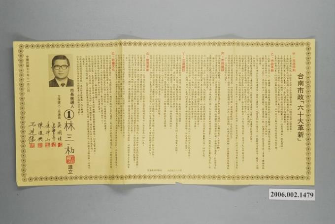 臺南市長候選人林三和選舉宣傳單