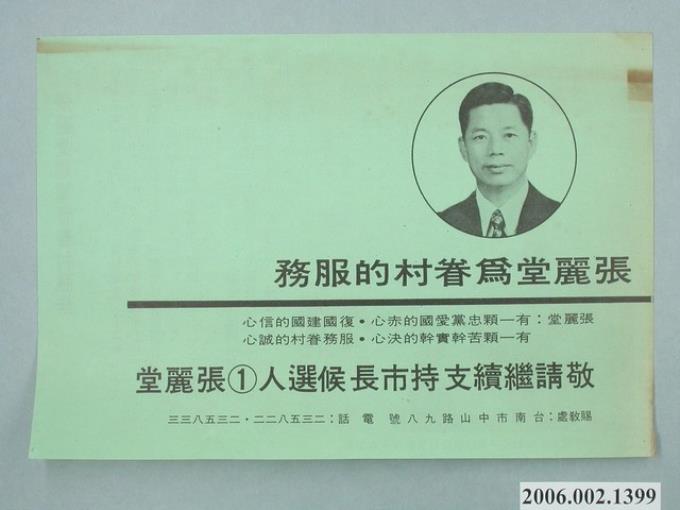 第8屆臺南市市長候選人張麗堂「我愛臺南-再建設‧再進步‧更團結‧更安定」宣傳文宣