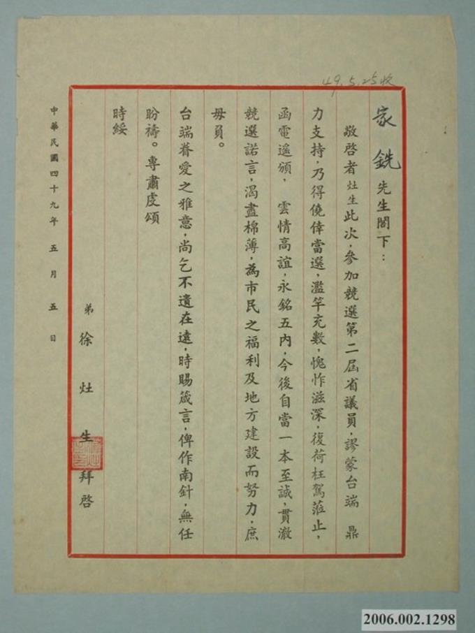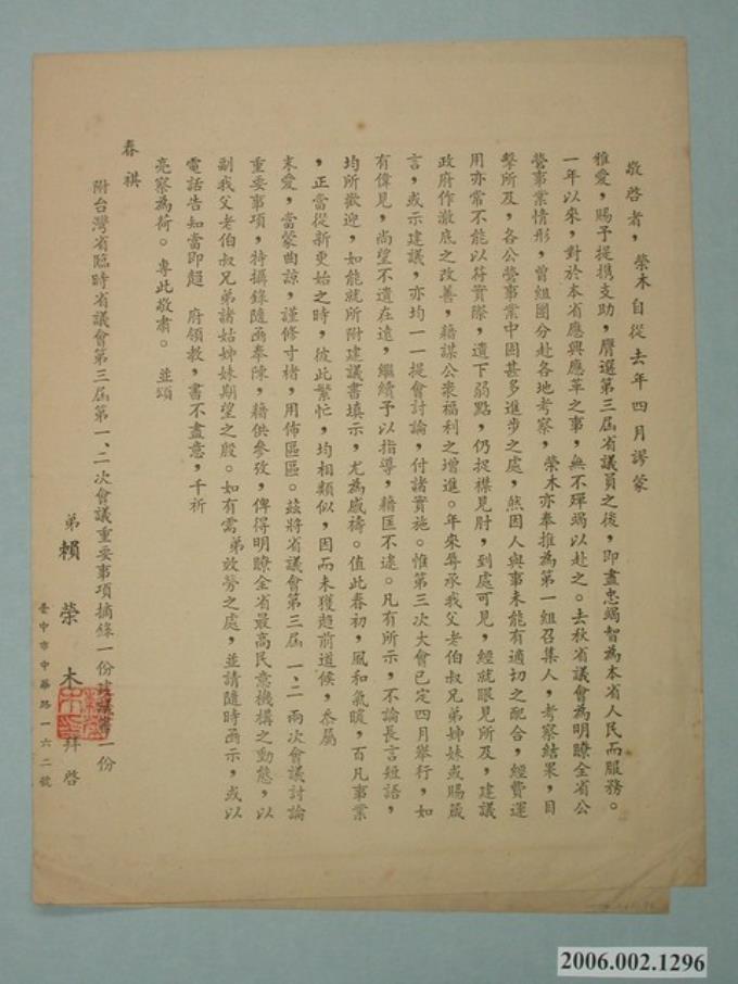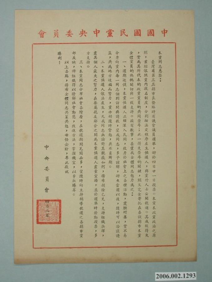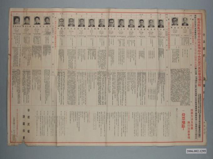 臺灣省臺南市選舉委員會編印《動員戡亂時期自由地區增加中央民意代表選舉選舉公報》