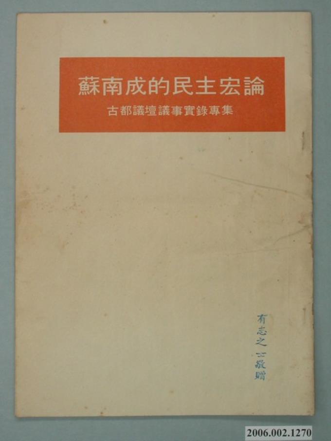 第8屆臺南市市長候選人蘇南成「蘇南成的民主宏論 古都議壇事實錄專集」選舉文宣
