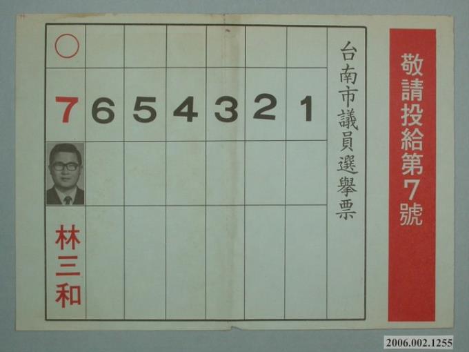 臺南市第9屆市議員候選人林三和選舉宣傳單