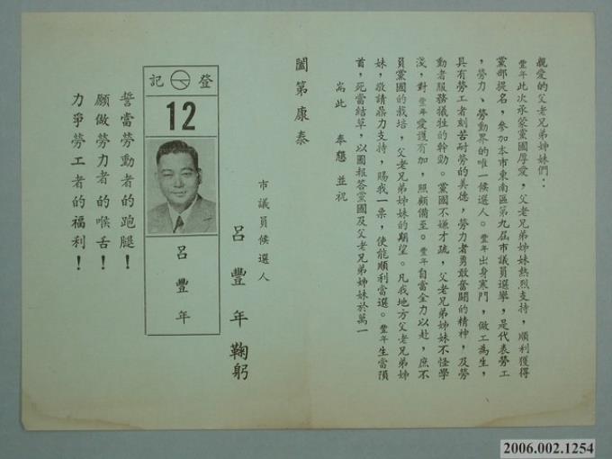臺南市第9屆市議員候選人呂豐年選舉宣傳單
