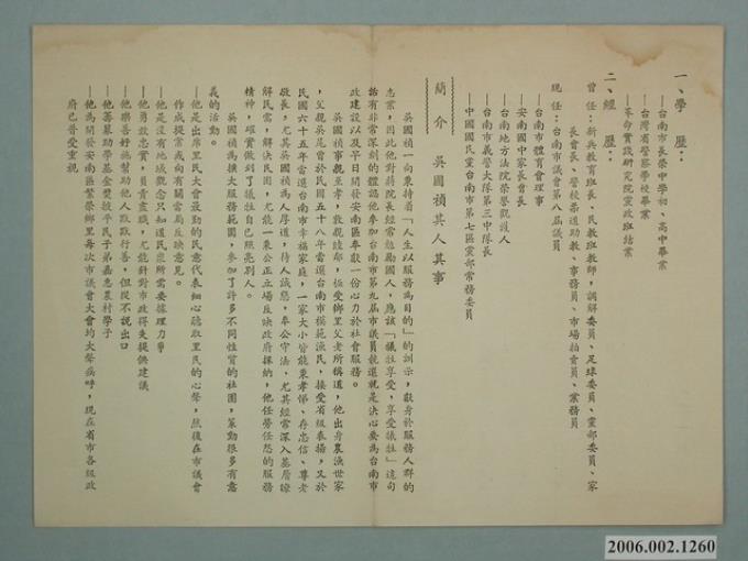 臺南市第9屆市議員候選人吳國禎選舉宣傳單