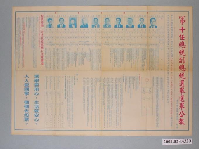 臺灣省臺南市選舉委員會編印《第十任總統副總統選舉公報》