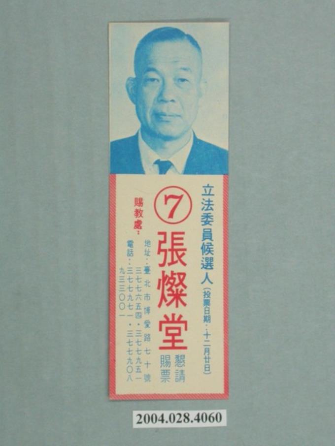立法委員候選人張燦堂功課書籤表式選舉文宣