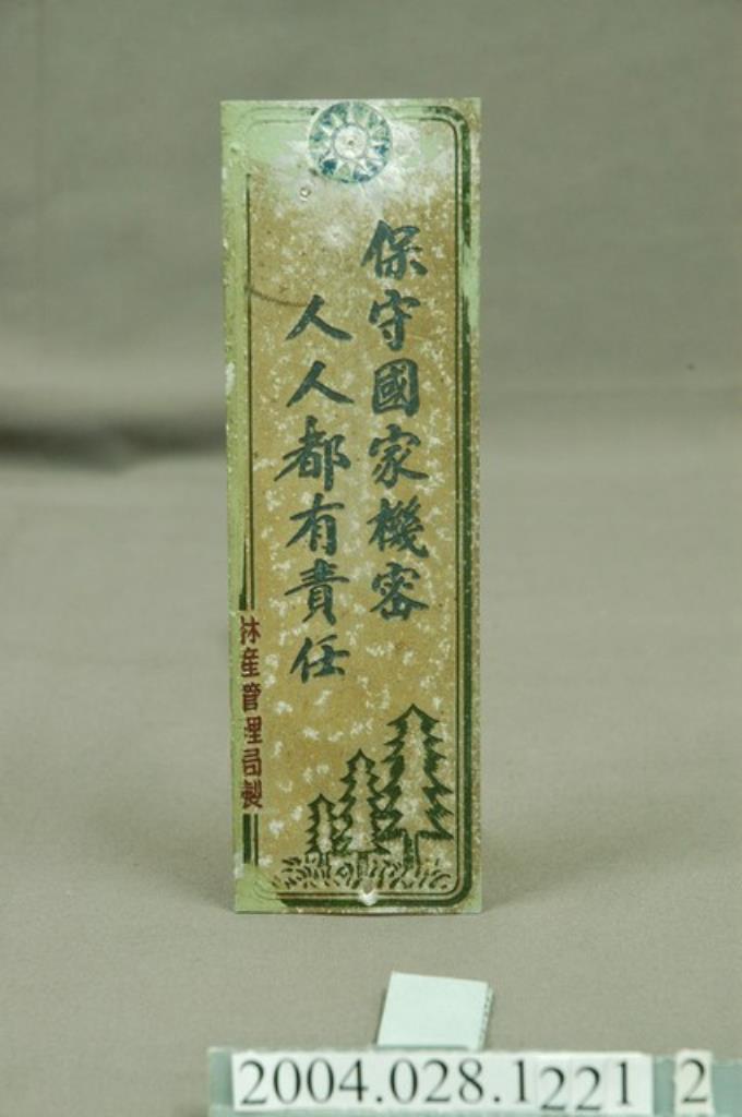 林產管理局製《保守國家機密,人人都有責任》防諜傳單牌