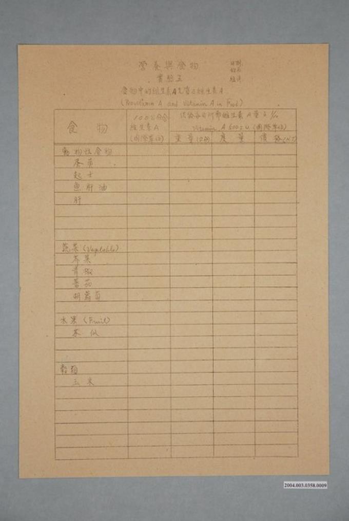 臺灣省立師範大學家政系基本縫教材之營養與食物實驗五