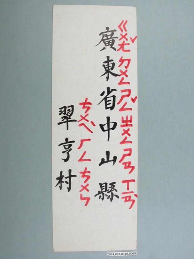 嘉義市宣信國民小學社會課教具字卡之廣東省中山縣翠亨村