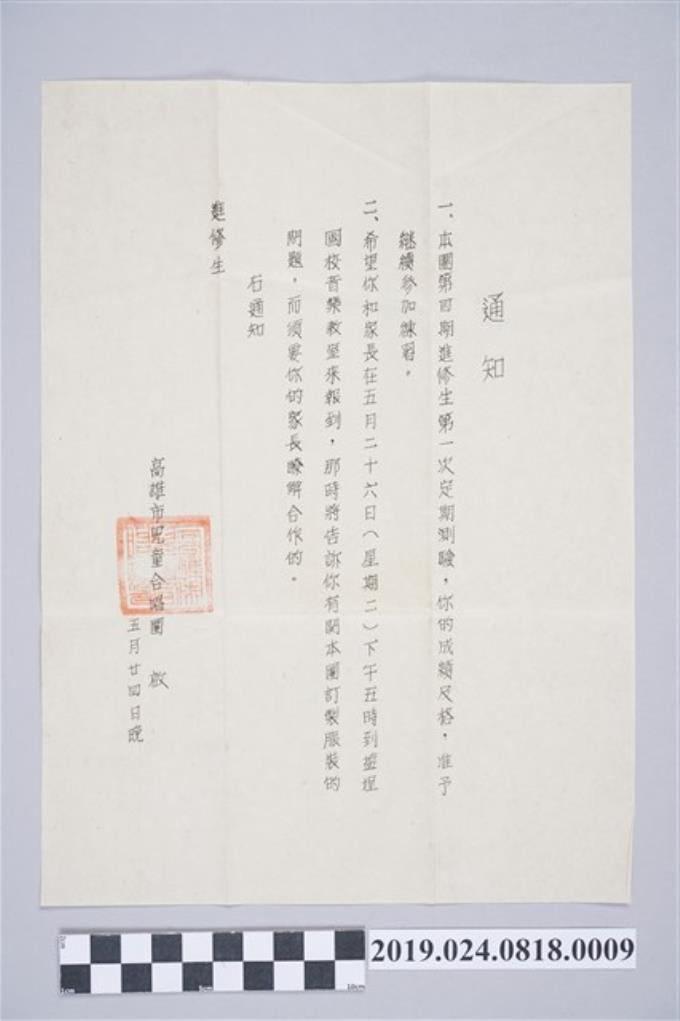 柯志明高雄市學生美術展覽會獲獎公文信函