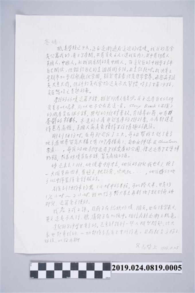 柯志哲從美國寄信給柯旗化夫婦信件影本