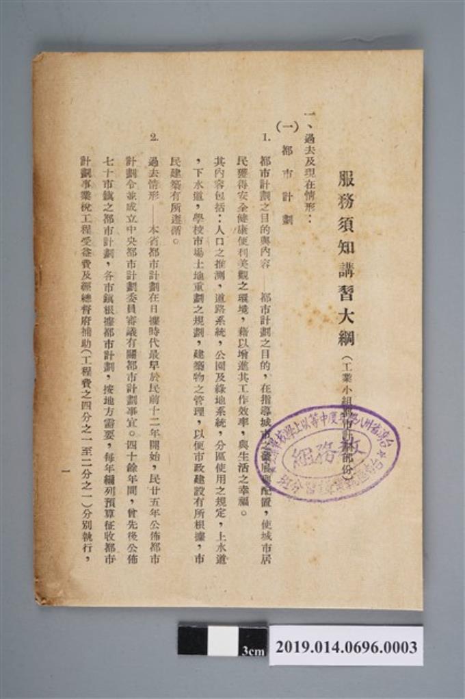 《服務須知講習大綱(工業小組都市計劃部分)》