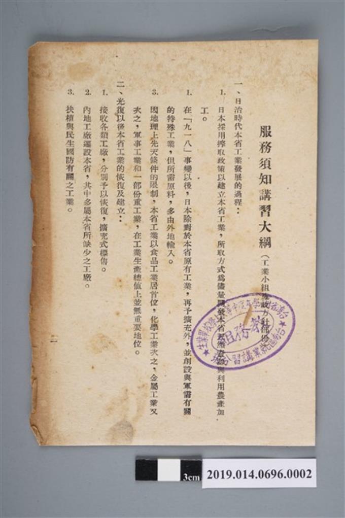 《服務須知講習大綱(工業小組工礦檢查部分)》