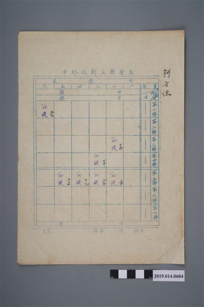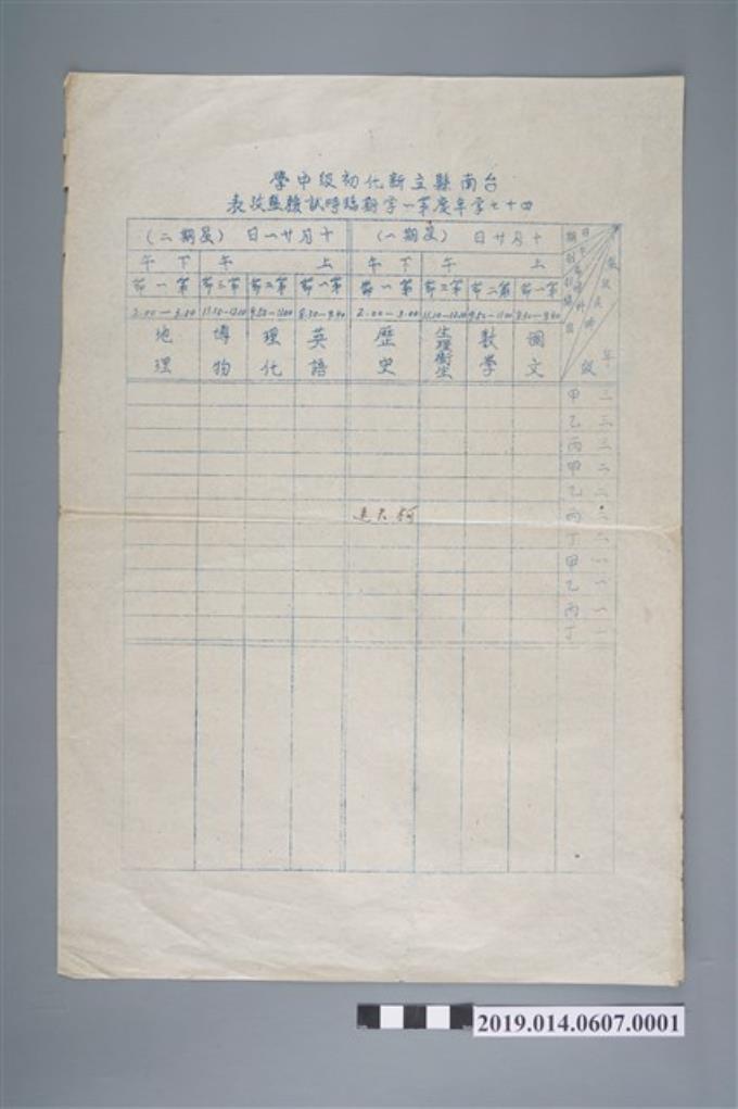 柯天送新化初中課表(含紅筆補記)