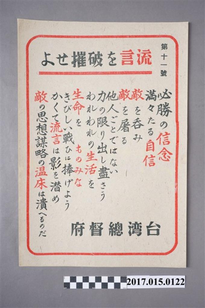 戰時臺灣總督府第11號破除留言宣傳單〈必勝的信念〉