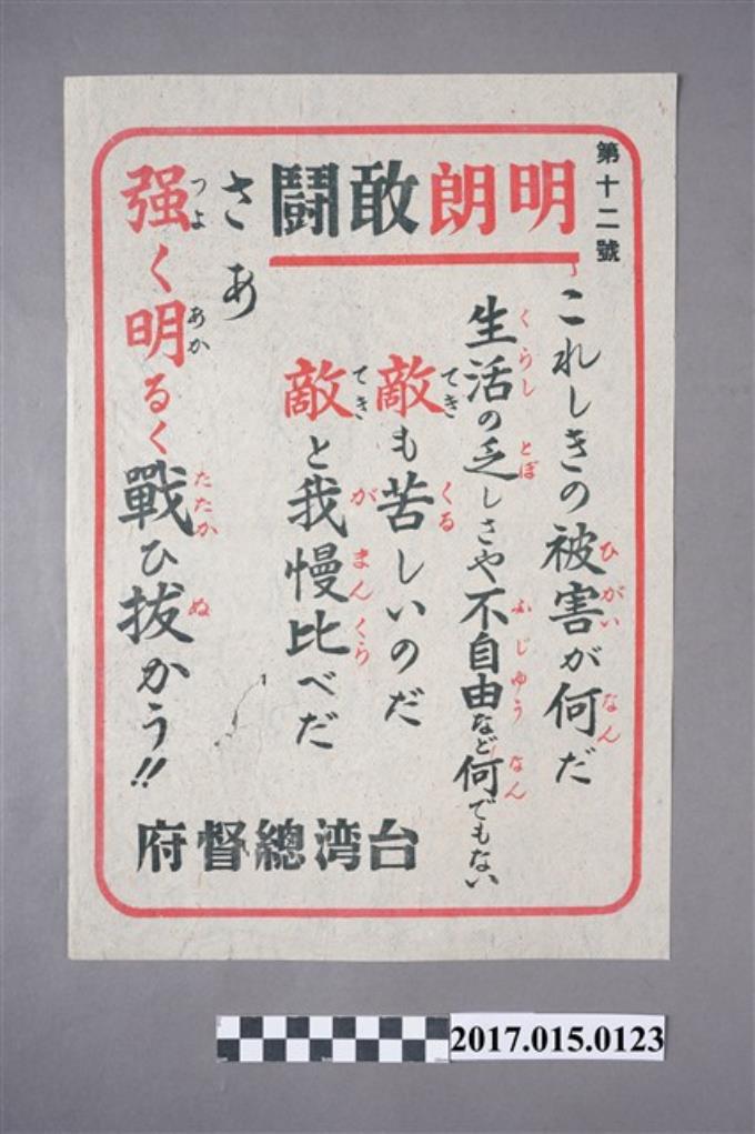 戰時臺灣總督府第12號傳單〈明朗敢鬥〉