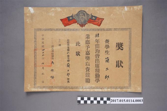 簡二郎出席精勤獎狀