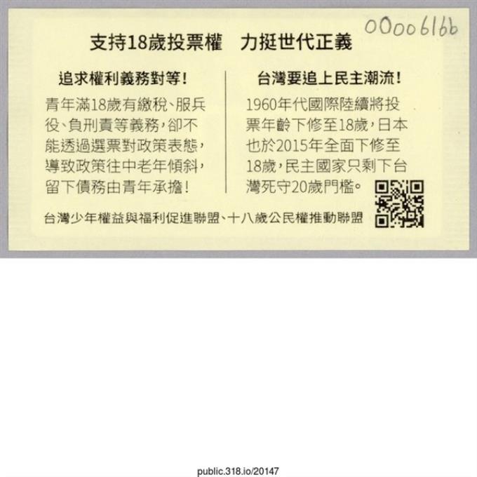 「投票正義 十八開始」貼紙