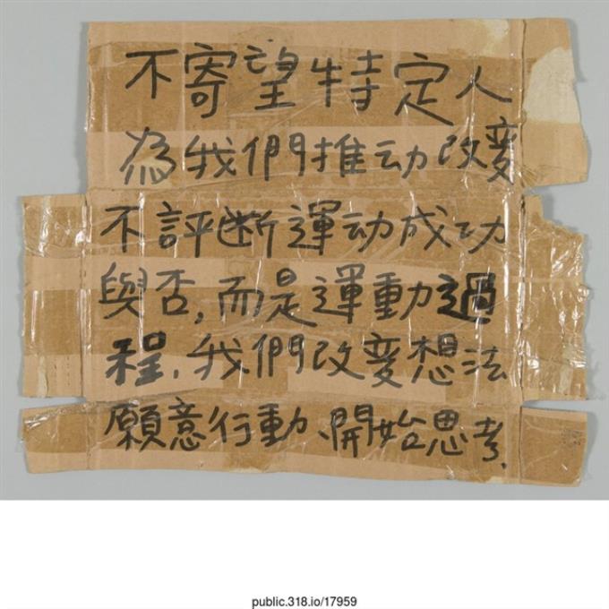 「不寄望特定人為我們推動改變」標語