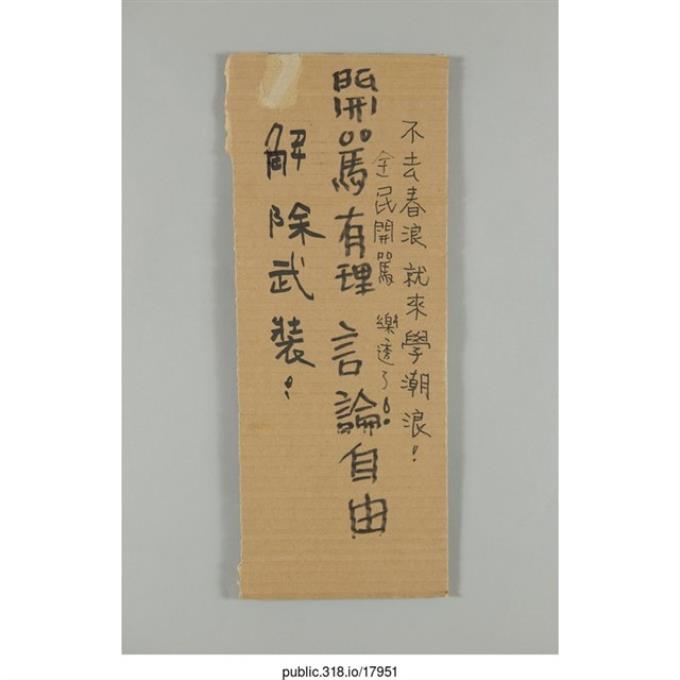 「﹝國民黨﹞為佔國會要﹝驅離學生﹞嗎?」傳單