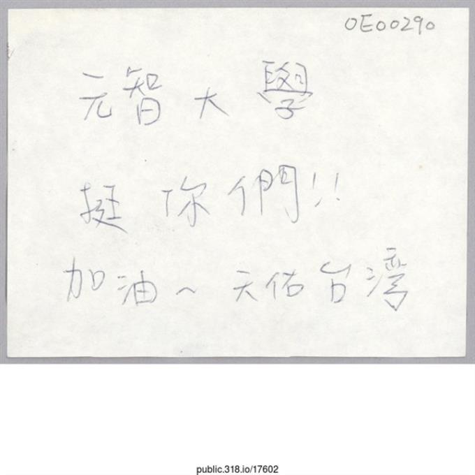 「元智大學挺你們!!」便利貼