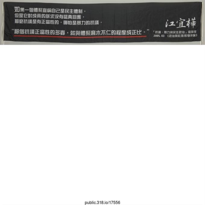 「如果一個體系宣稱自己是民主體制」布條