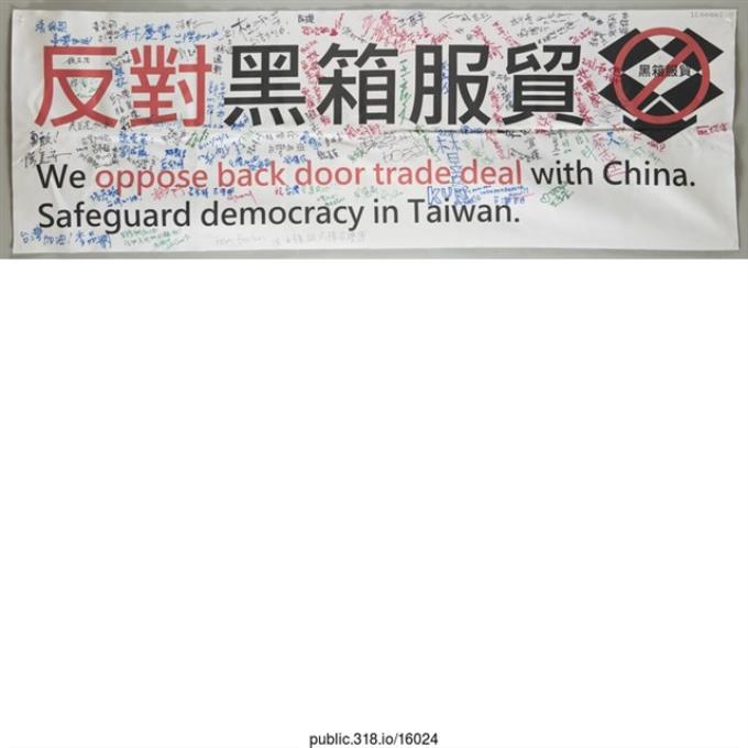 「反對黑箱服貿」布條