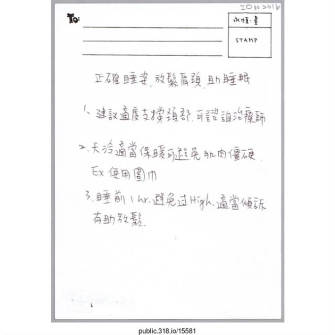 「正確睡姿 放鬆肩頸 助睡眠」明信片