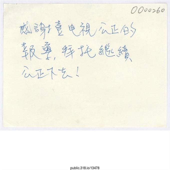 「感謝壹電視公正的報導」便利貼