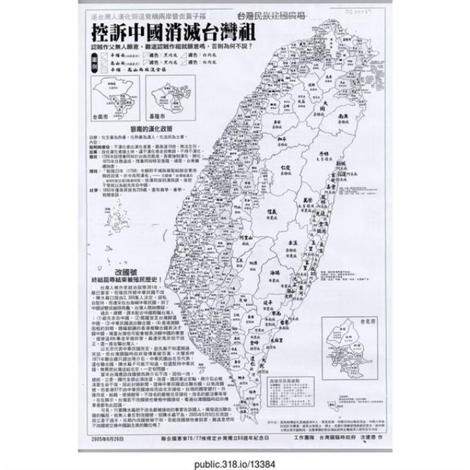 「控訴中國消滅台灣祖」傳單