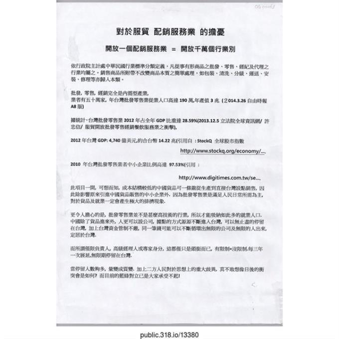 「配銷服務業的擔憂」傳單