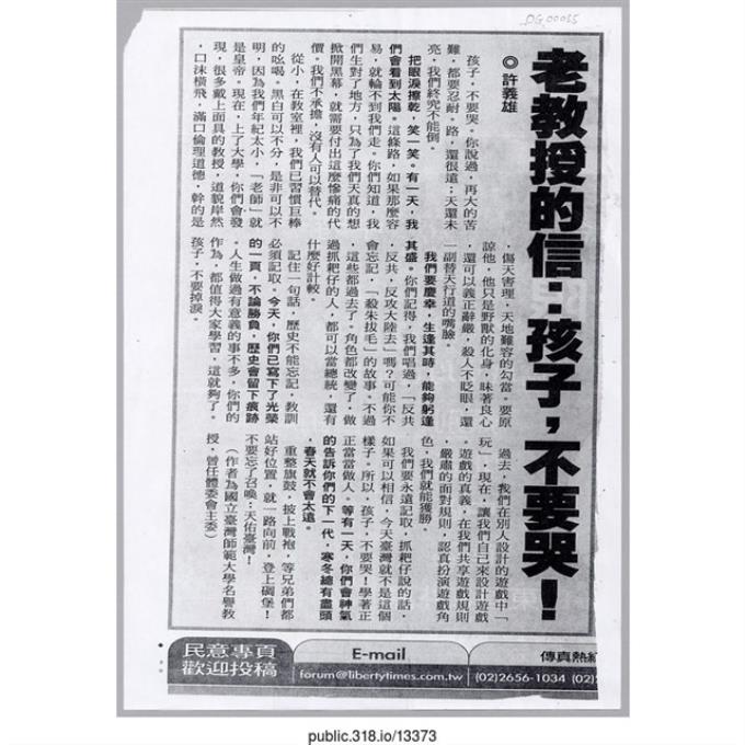「老教授的信」報紙