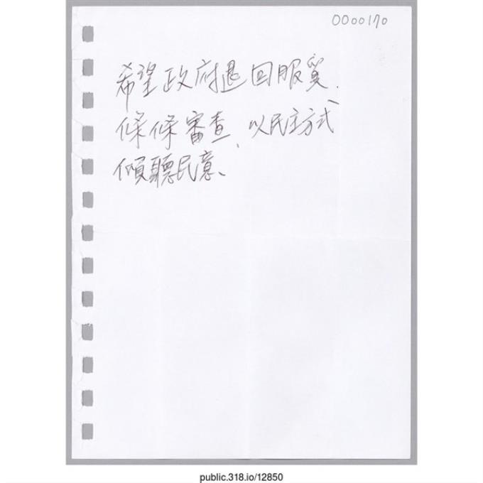 「希望政府退回服貿」便條紙