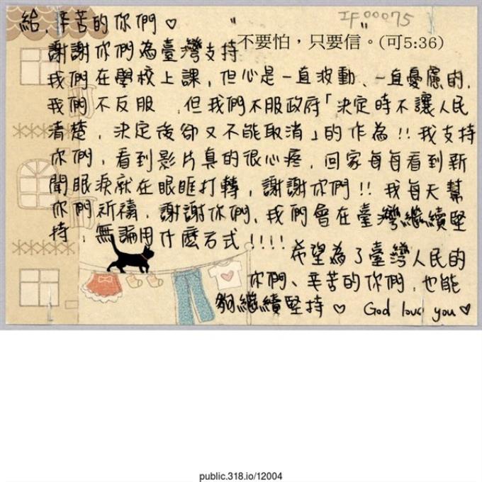「謝謝你們為台灣支持」卡片