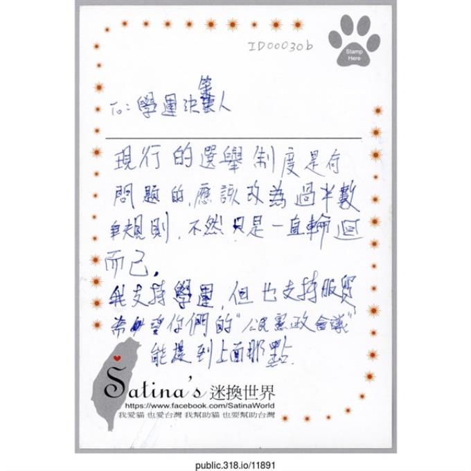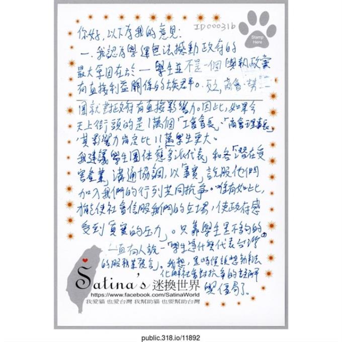 「To:學運決策人」明信片