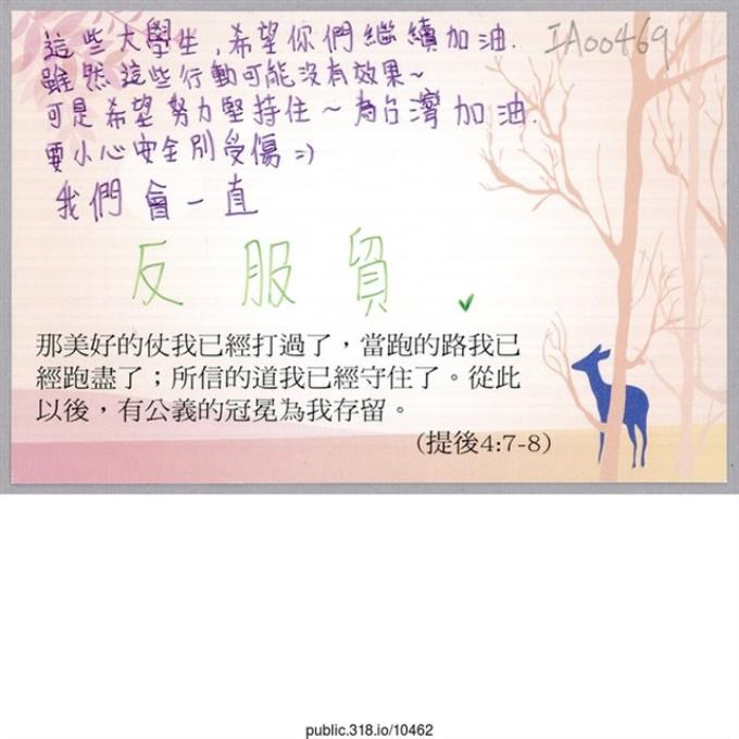 「這些大學生,希望你們繼續加油」卡片