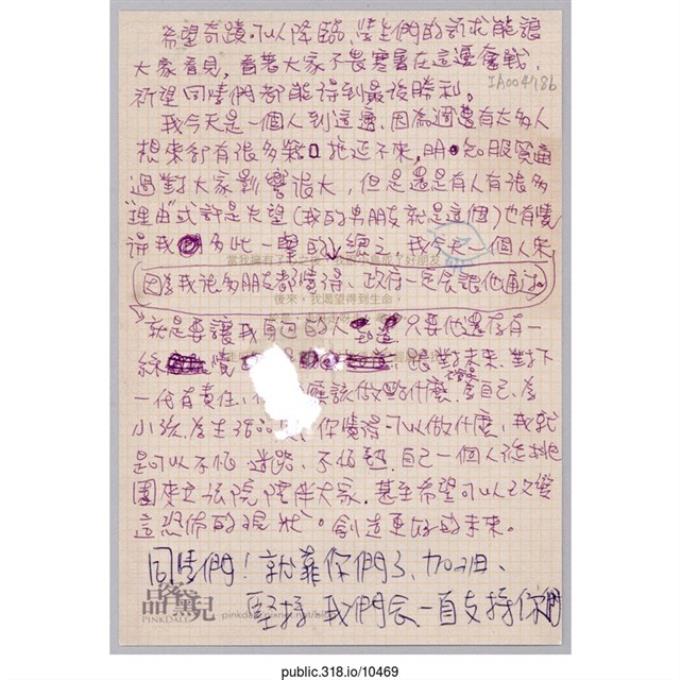 「我雖然不能與你們一起抗議」卡片