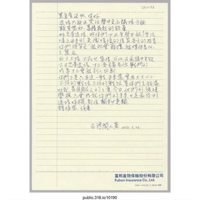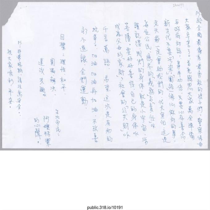 「給全國最優秀、最勇敢的孩子們、警察保母」信件