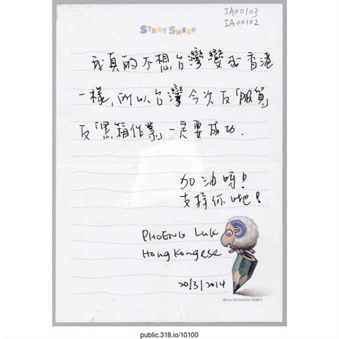 「崇右影視二甲兄弟會,明德304班反服貿!!」便利貼