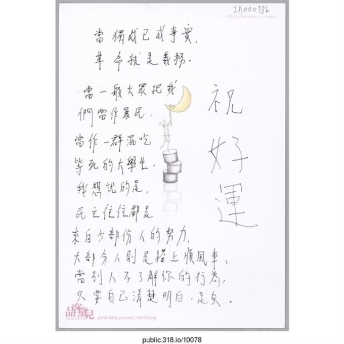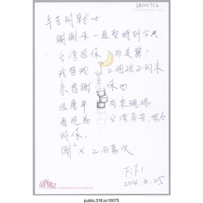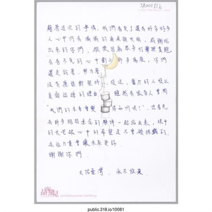 「我們看見了還有好多好多人心中仍有滿滿的勇氣與光明。」明信片