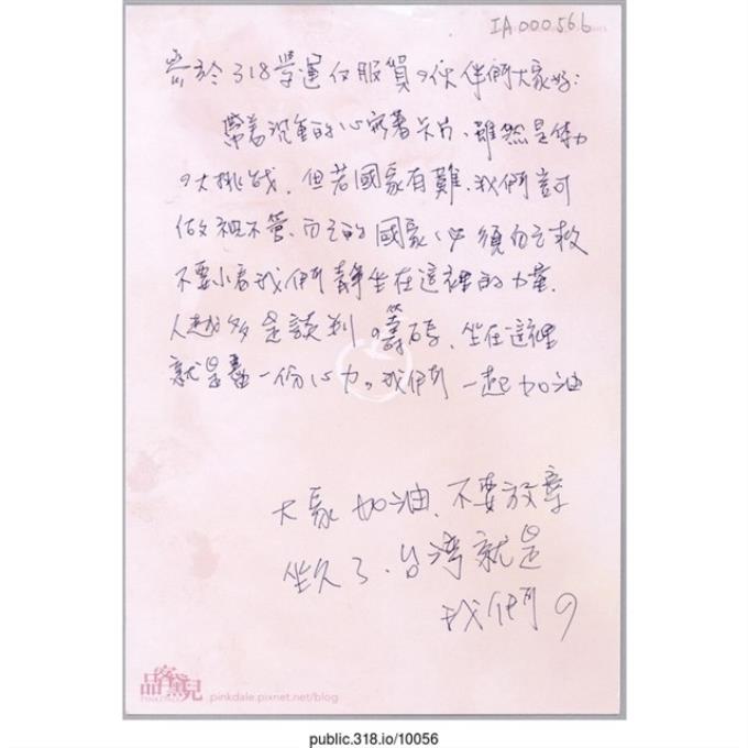 「謝謝你們帶頭反對服貿黑箱作業」明信片