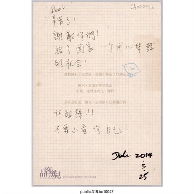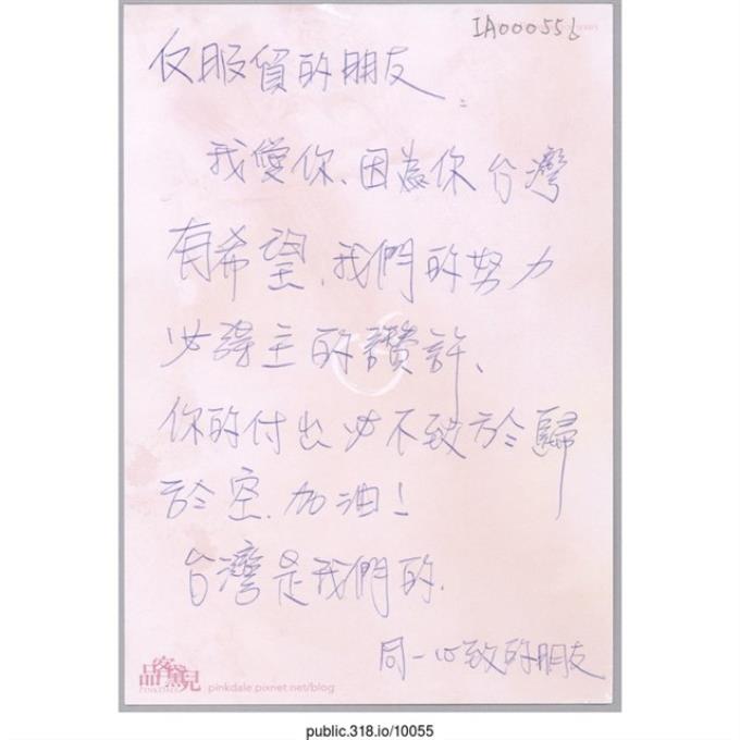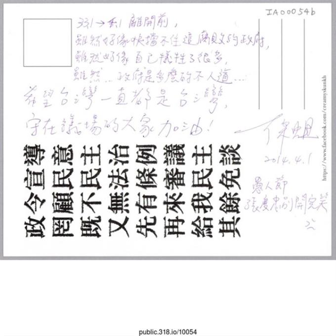 「給了國家一個用心體認的機會!」明信片