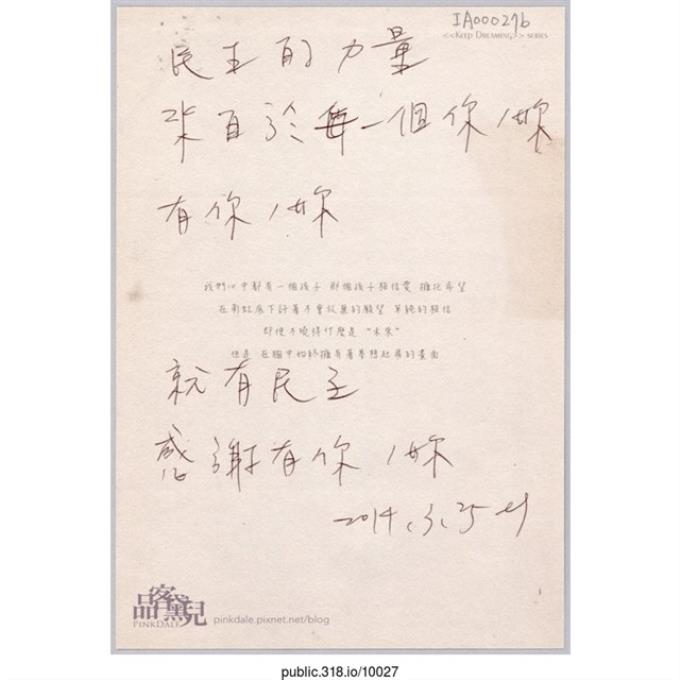 「民主的力量來自於每一個你/妳」明信片