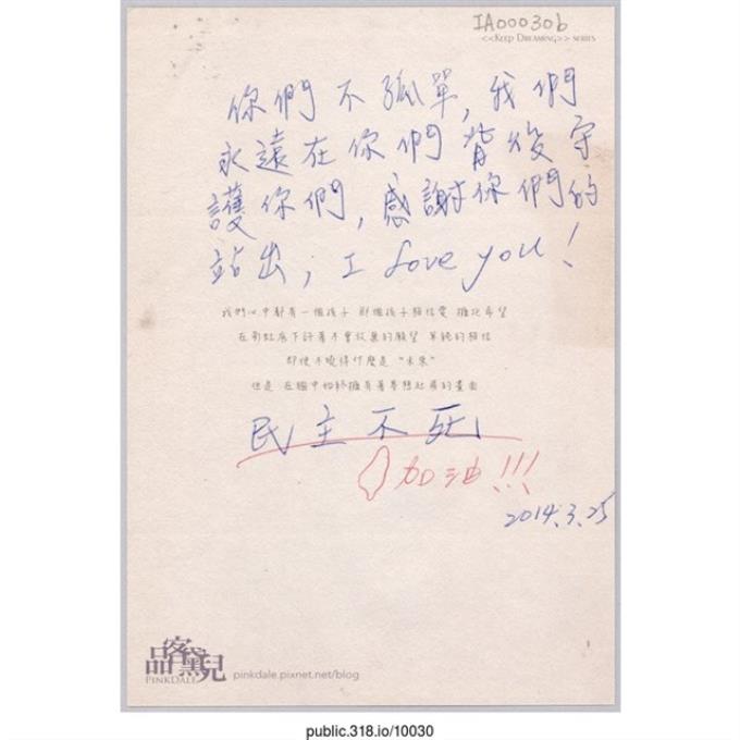 「I Love You!民主不死」明信片