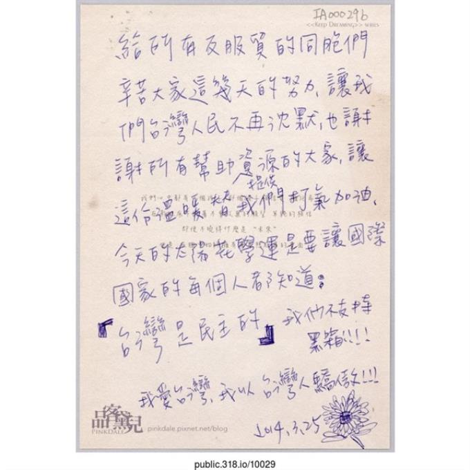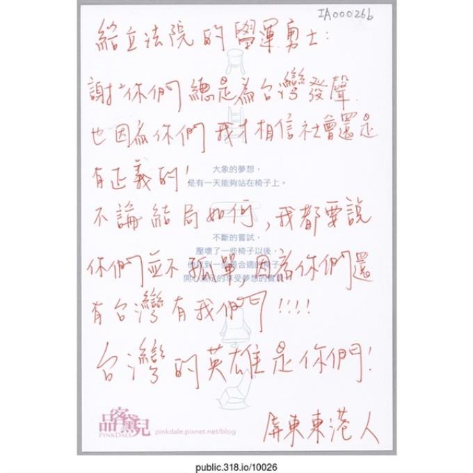 「給所有反服貿的同胞們」明信片
